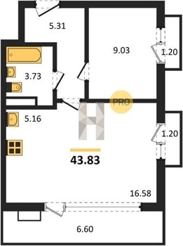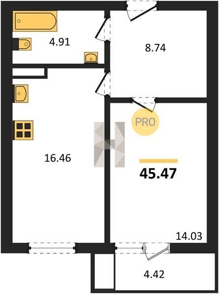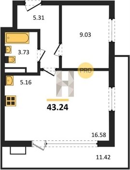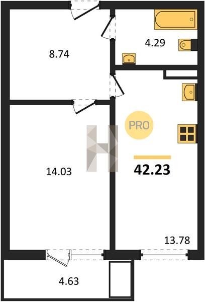 Площадь от 42.23 м2