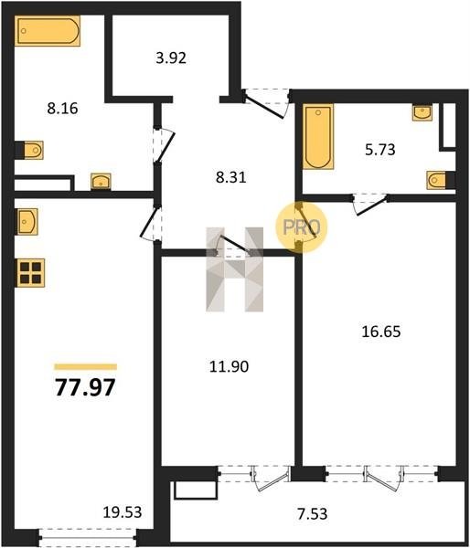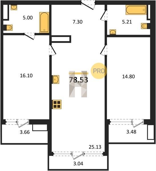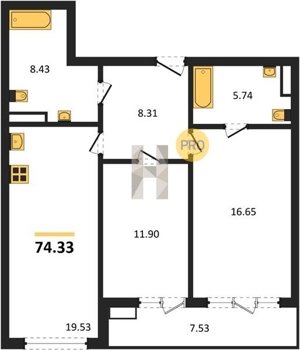 Площадь от 74.33 м2