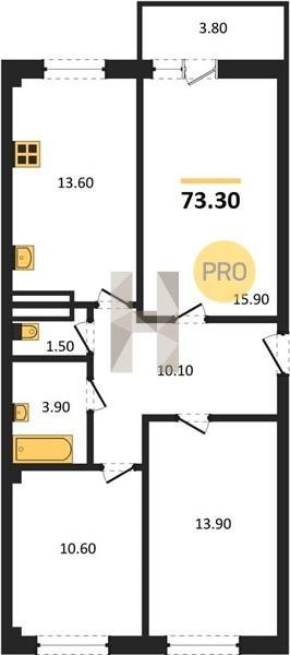 Площадь от 73.3 м2