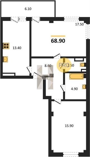 Площадь от 59.9 м2