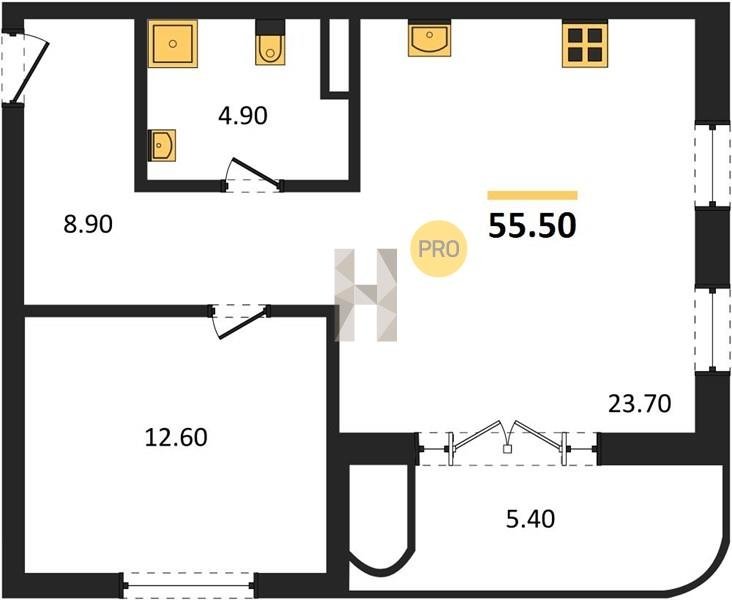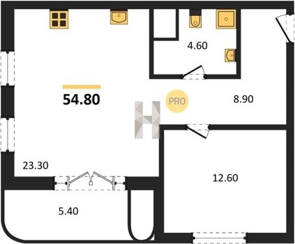Площадь от 54.8 м2