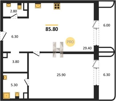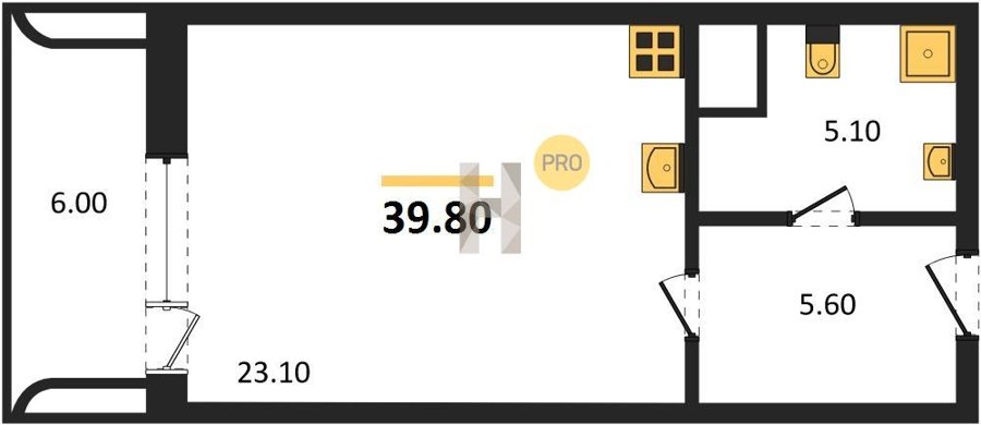 Площадь от 39.8 м2